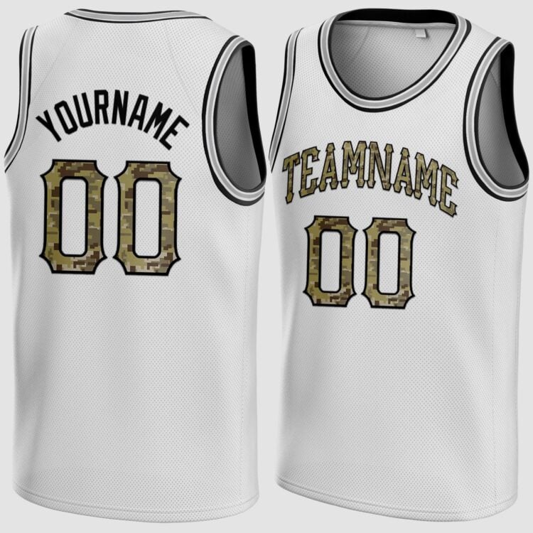 Custom White Camo-Black Round Neck Basketball Jersey