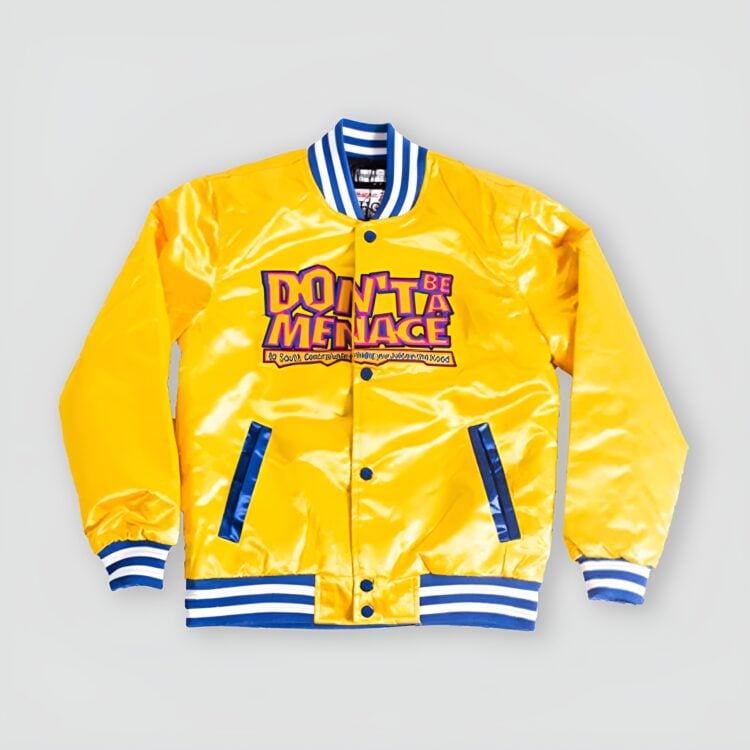 Let your kid stand out with the Youth Don’t Be a Menace Yellow Satin Jacket. With its bold color, sleek satin finish, and iconic graphics inspired by the classic film, this jacket brings ‘90s street style to the next level. Perfect for young trendsetters who love nostalgia with attitude!